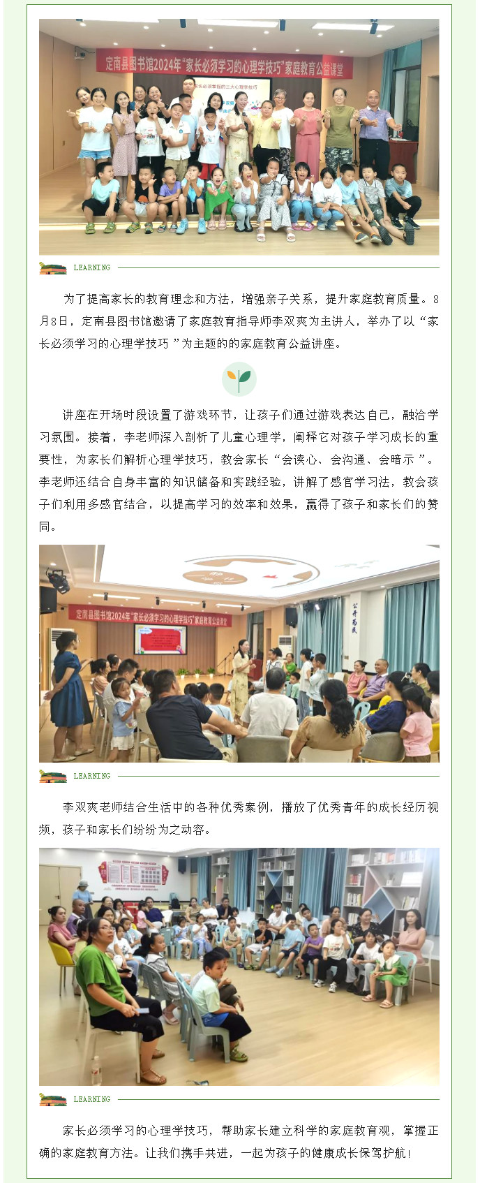 定南县图书馆开展家庭教育公益讲座