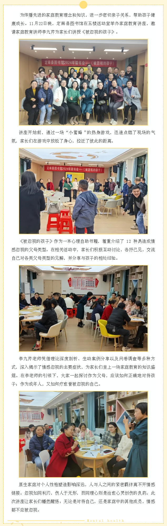 定南县图书馆举办《被忽视的孩子》家庭教育讲座
