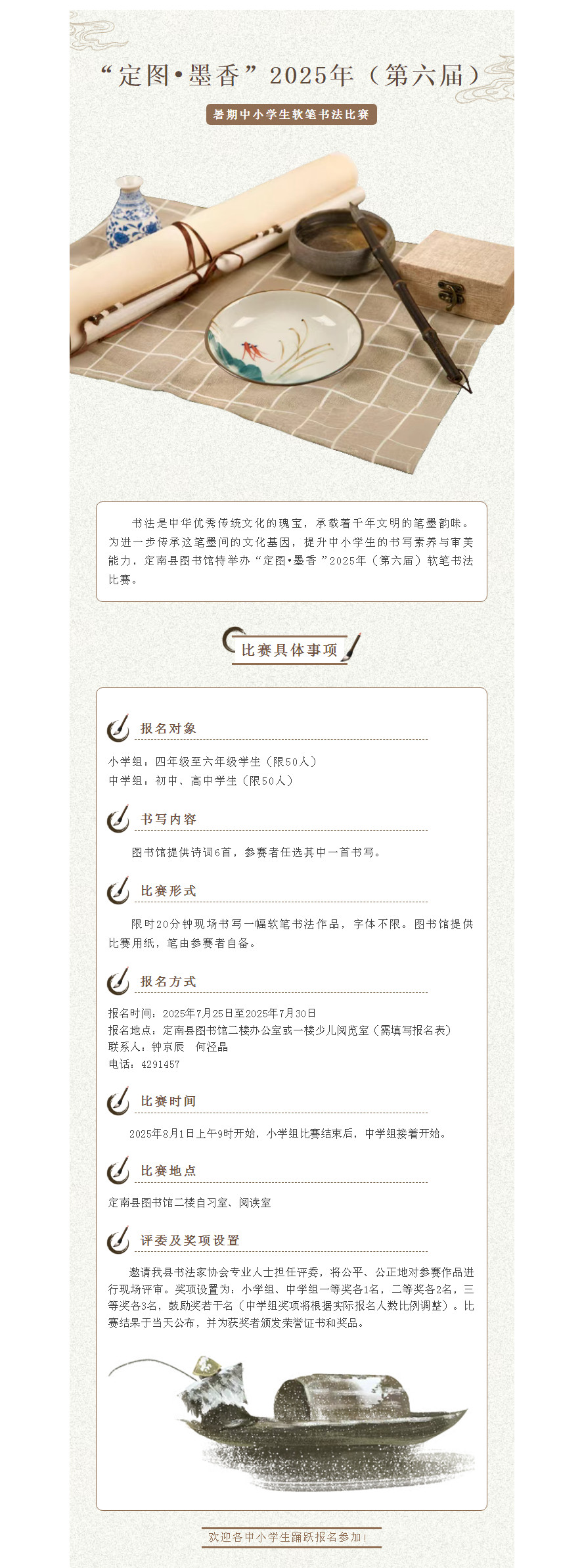 “定图•墨香”2025年(第六届)暑期中小学生 软笔书法比赛通知